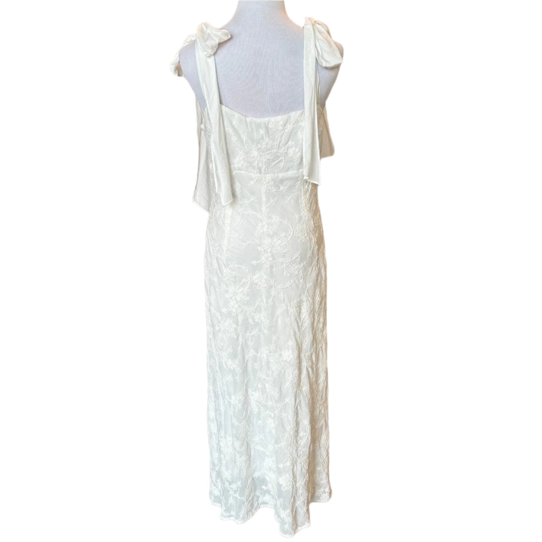 - White dress with embroidered flowers