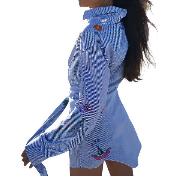 BLUE AND WHITE STRIPES SUNSHINE SHIRT DRESS