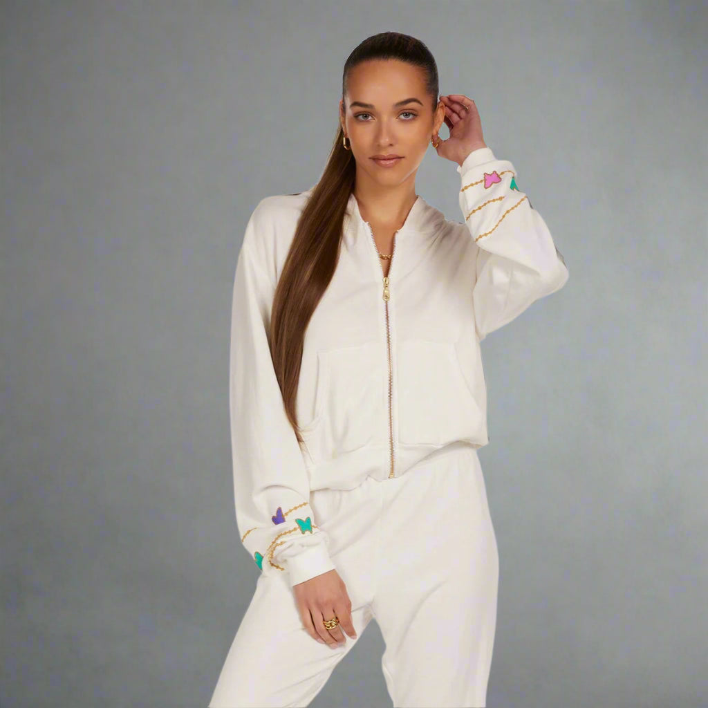 BUTTERFLY CHARM HAPPYFACE ZIP UP SWEATSHIRT