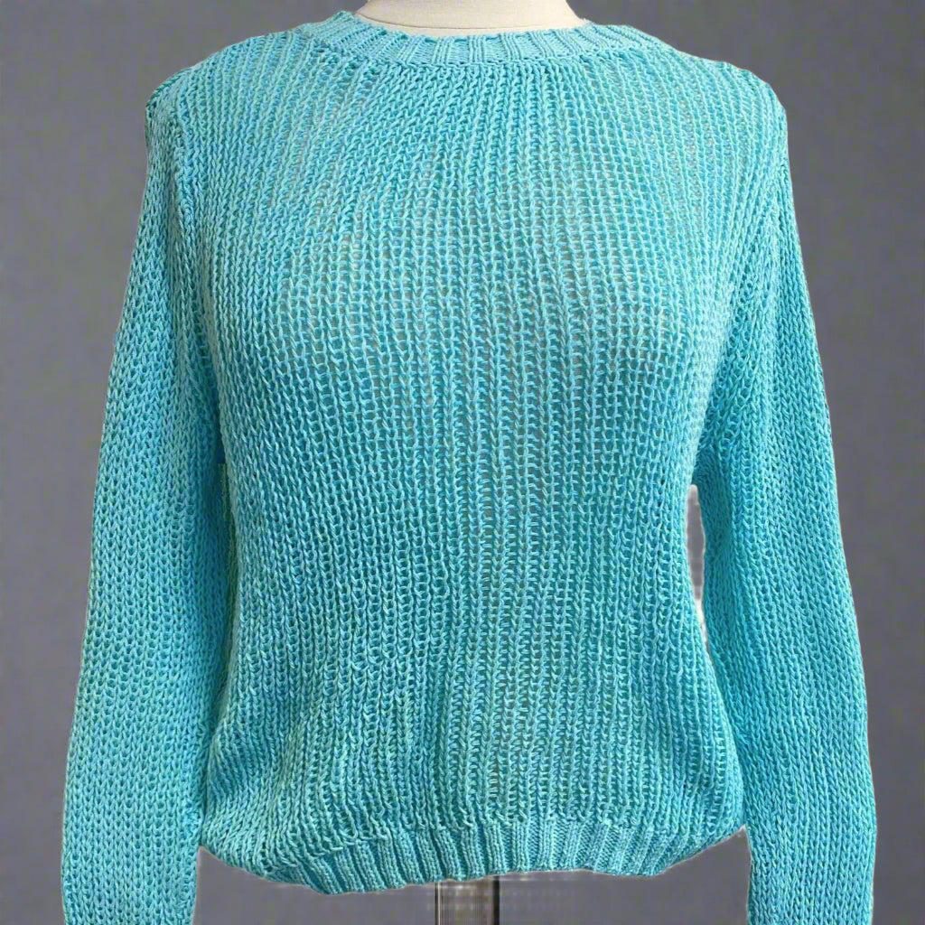 Knit from soft, lightweight, and breathable cotton blend yarn.