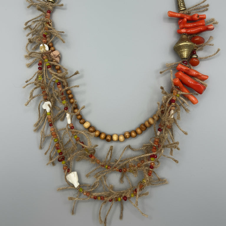 CORAL LUCKY CLOVER WOOD NECKLACE