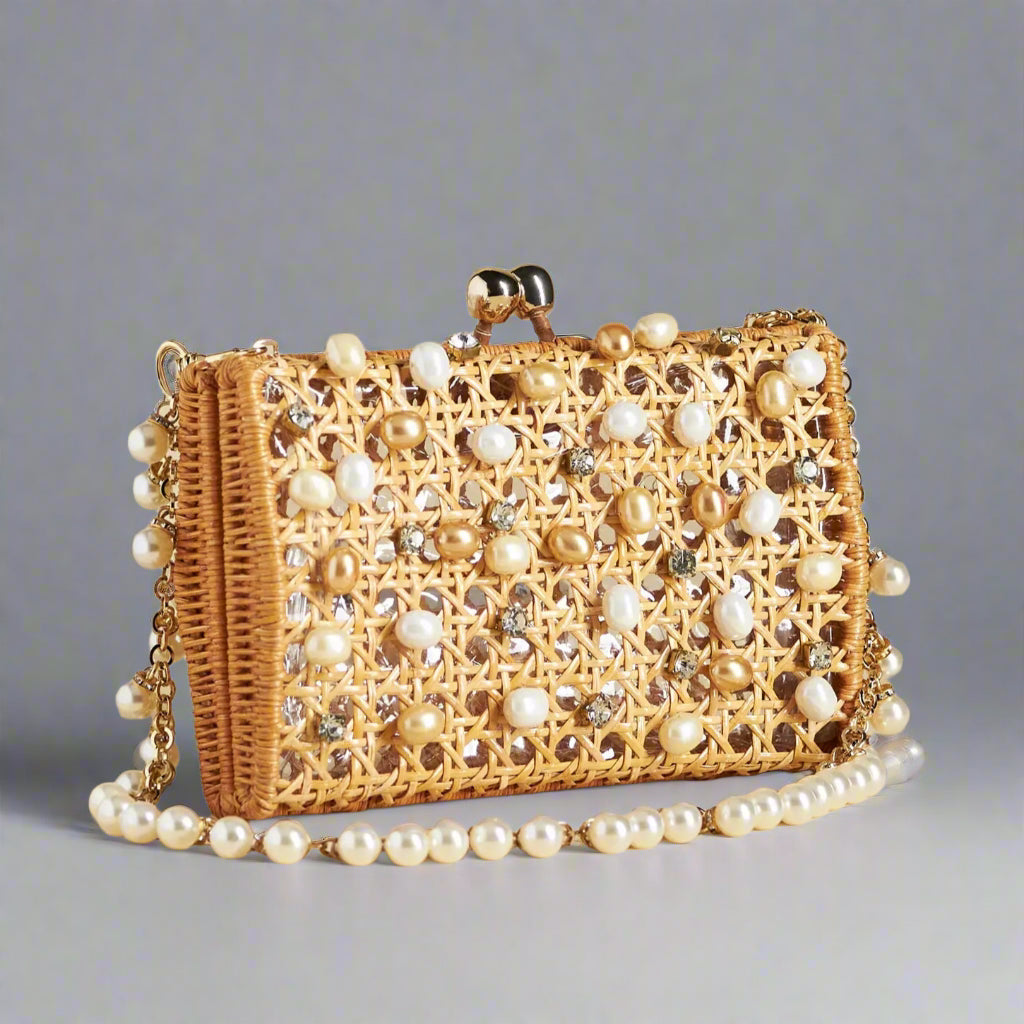 - Straw crossbody bag with rain of mother-of-pearl
