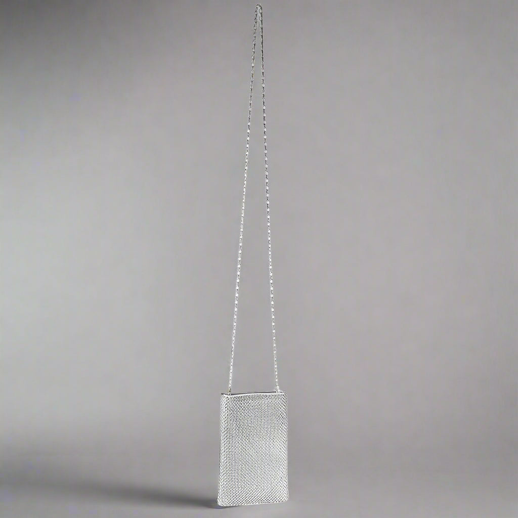 We have updated our bestselling Cosmo bag with lots of sparkle. The simple shape of this bag is elevated with the addition of all over glass crystals. This is the perfect size bag for most cell phones and all of your essentials. The snap closure keeps your belongings secure. Hands free glam is exactly what a night out with your friends needs.