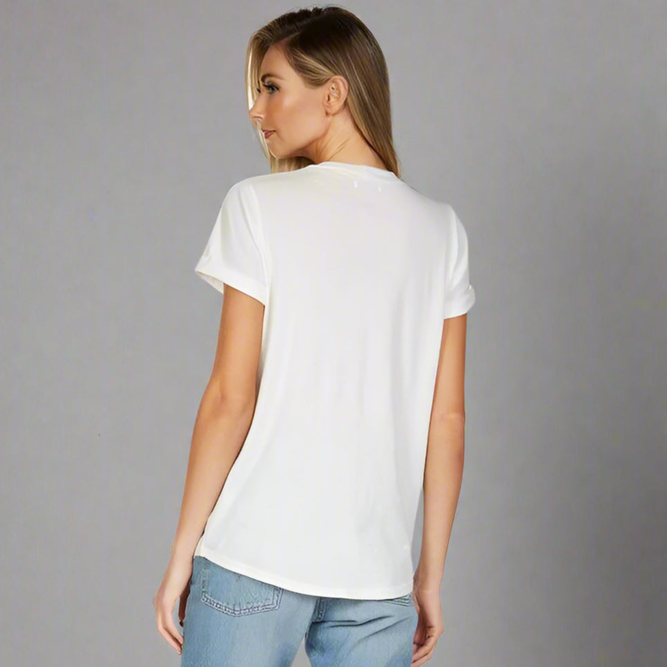 Peace Love Skull Embroidered on Ultra Soft Lightweight Vintage Tee in Milk
