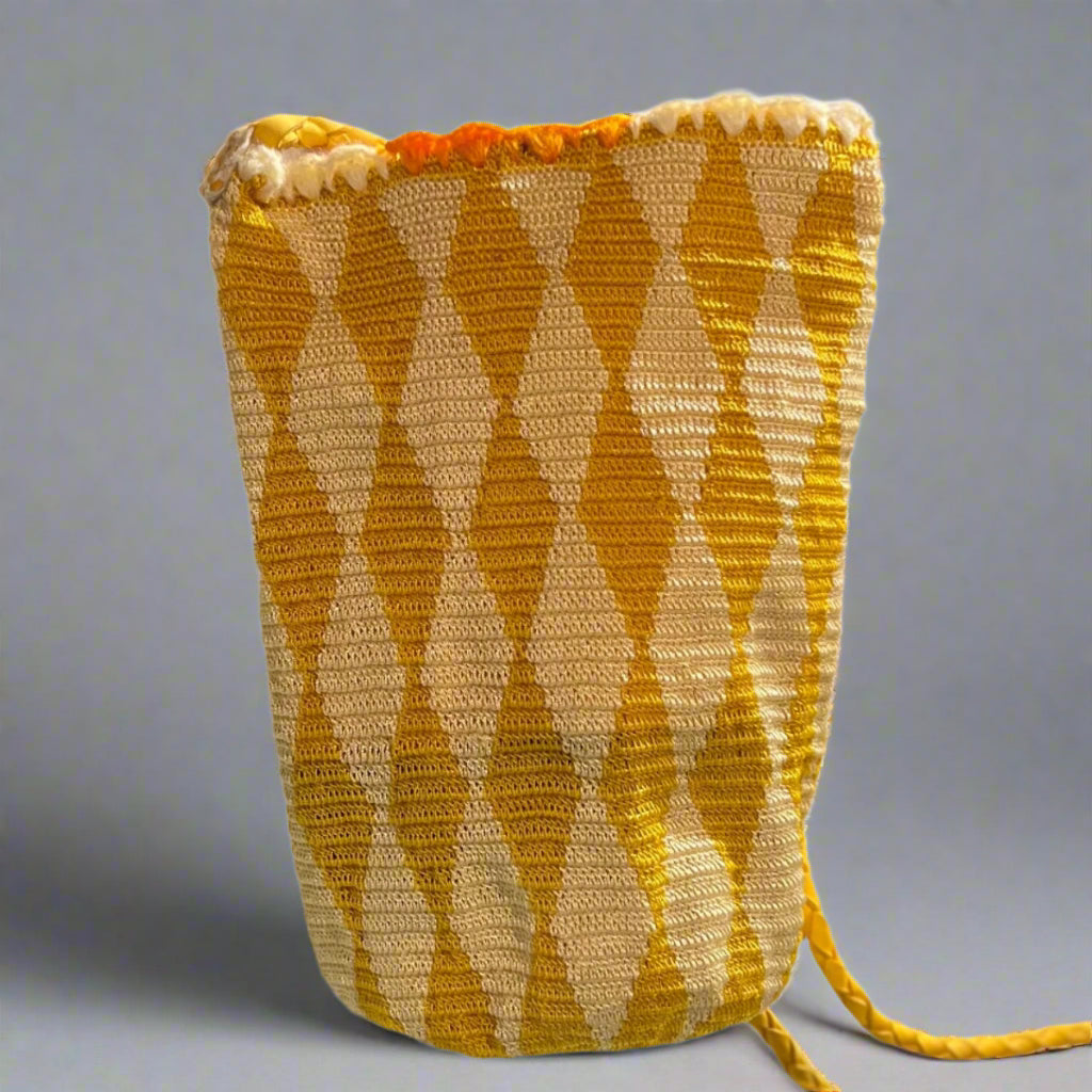 - Here we recycle used industrial food bags and turn them into pieces of art. The bags are turned inside out and totally hand embroidered using a pixel - like technic, weaving in and out of the base material.
