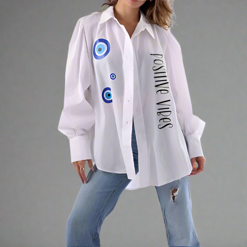 Positive Vibes only with this white blouse...The puffy sleeves, and relaxed fit is perfect for any occasion.