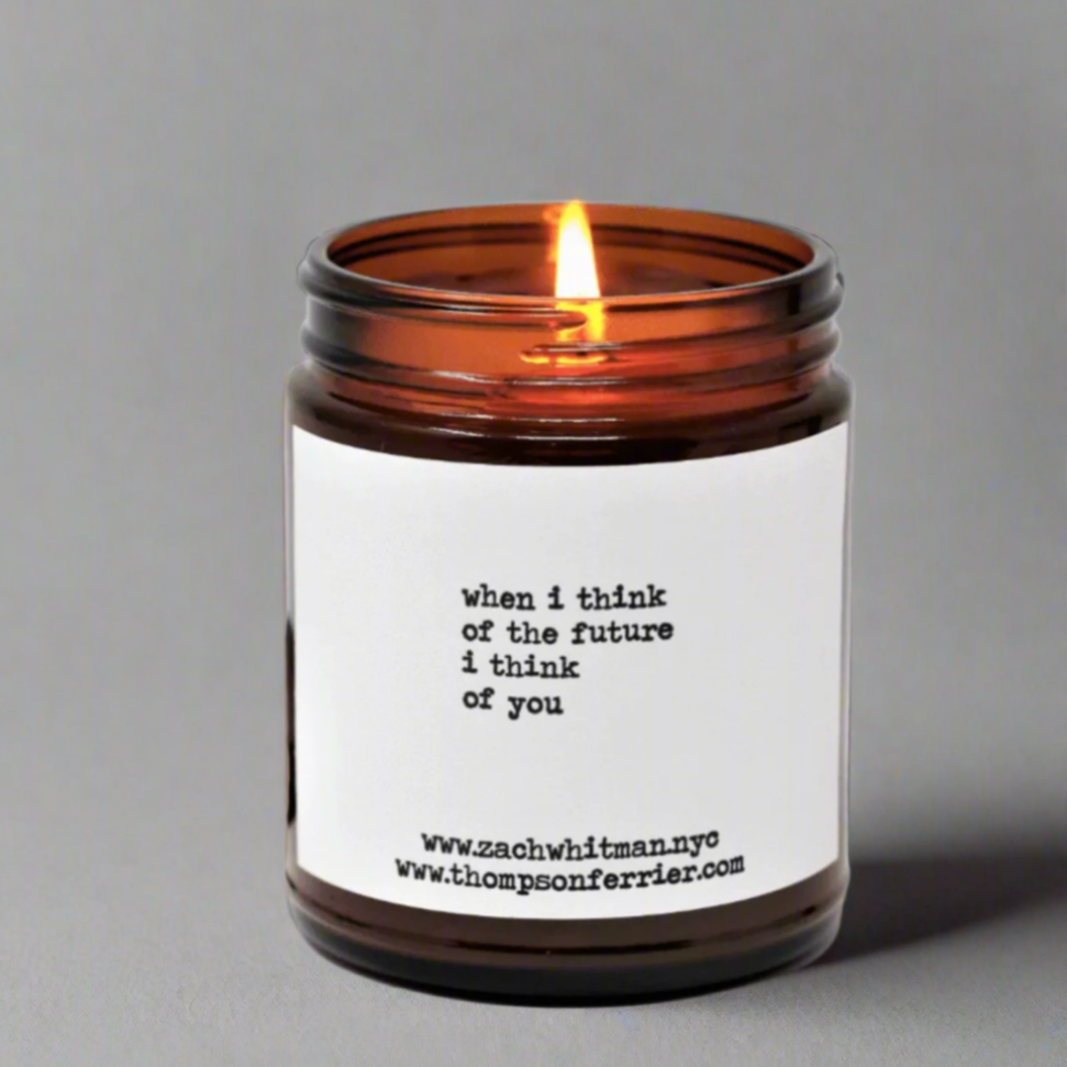 Future, Zach Whitman. Poem on candle reads: "When I think of the future, I think of you."