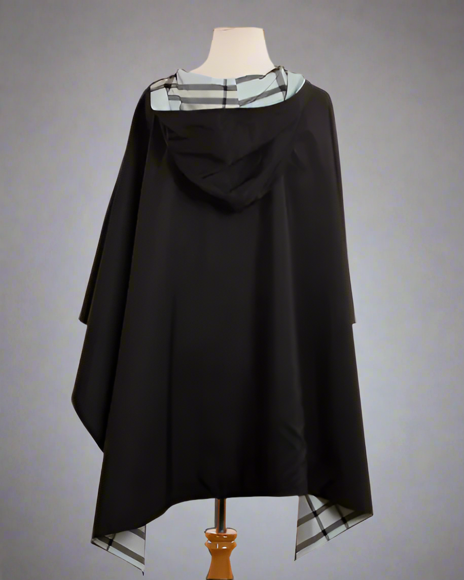 HOODED BLACK & LIGHT BLUE PLAID RAINRAP