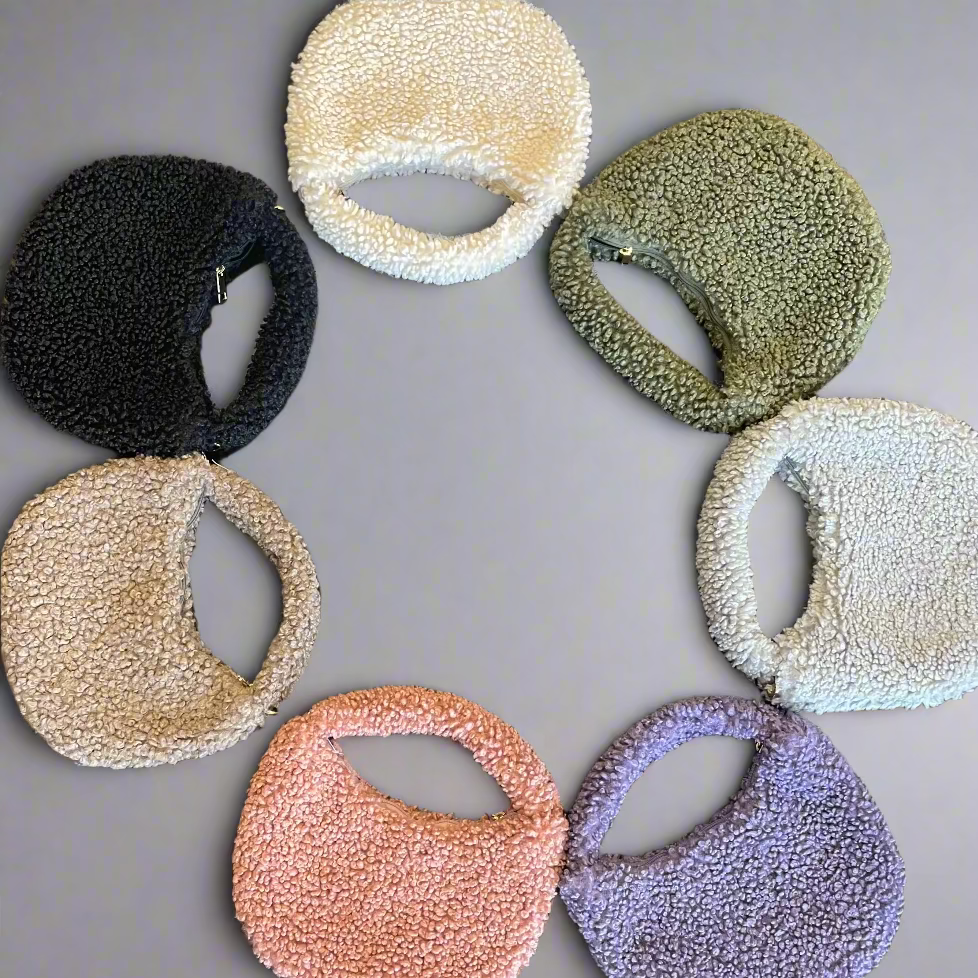 - Plus teddy hobo style bag available in 7 colors. Includes gold link crossbody chain.