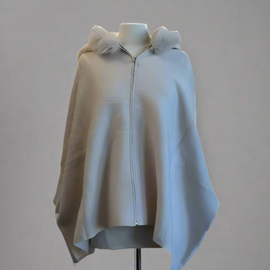 ZIP UP HOODIE WITH FOX TRIMMED HOOD