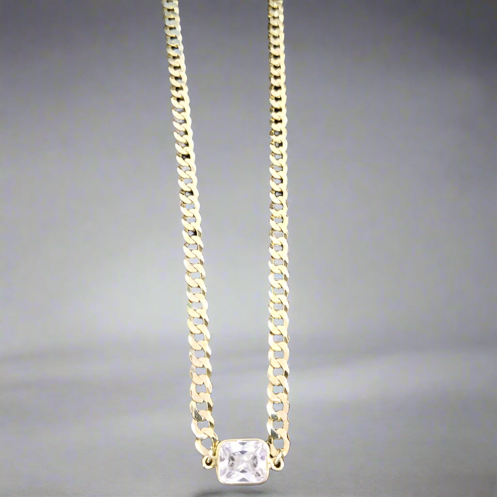 Gold cuban link necklace with cubic zirconia stone pendant ]